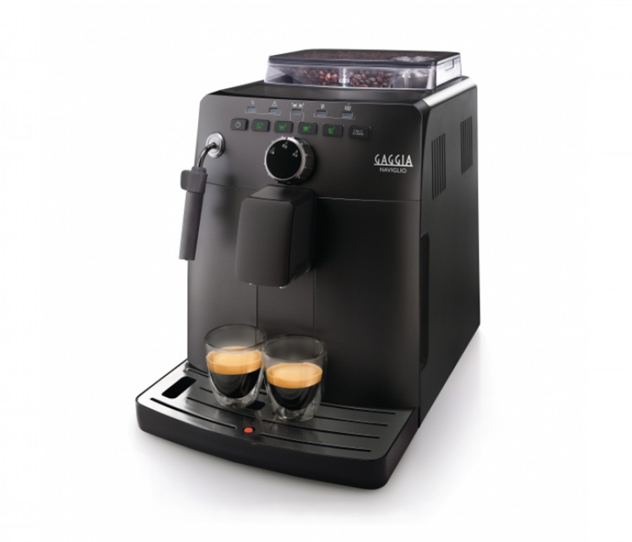 Máquina automática Gaggia Naviglio. Ajuste em uma das três configurações de dosagem usando o seletor acima da cabeça de infusão, e aperte um dos botões de café, normal ou curto, dependendo da intensidade que deseja o seu café expresso. Outras funcionalidades são atribuídas aos 3 botões restantes que oferecem respectivamente: água quente para chás e bebidas solúveis, vapor para esquentar ou vaporizar leite no bico “pannarello” e o botão de limpeza que despeja água quente nas partes internas da máquina, higienizando-a. Possui partes removíveis para facilitar a limpeza e permitir o aumento da vida útil do equipamento.